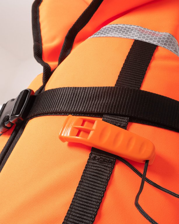 Fluorescenční oranžová tkanina s perfektní viditelností v kombinaci s reflexními prvky usnadňuje zpozorování dítěte v podmínkách se sníženou viditelnosti, to je velmi užitečné při plavbě na oceánu nebo pádlování v šeru nebo ve tmě.